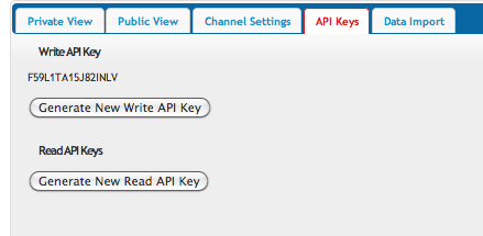 4. Select the tab named API Keys to get your secret key necessary to upload data to the channel. The key you are interested in is the one named Write API Key. Copy it to your clipboard.