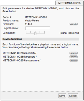 6. In the device list, click on the configure button next to the device for which you want to send the data to ThingSpeak (in our case we use a Yocto-Meteo).
