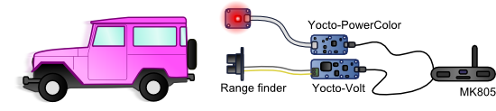 To do this, we add a Yocto-PowerLed and a few lines of code to change the led color and make it flash, depending on the distance of the approaching car. Here is the result in a video: