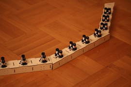 Technically, this test is a success. Except for compiling fluidsynth under Mac OS X, which was a bit of a pain, the making and the coding of this project are very simple and the instrument works out of the box. The LIDAR-Lite sensors provide indeed usable distance measures, much more reactive and pin-pointed than what you would get from a sonar. The ten sensors side-by-side at 10cm from each other work without mutual interference, and are perfectly able to discriminate the hand that moves in front of them at 1m50.