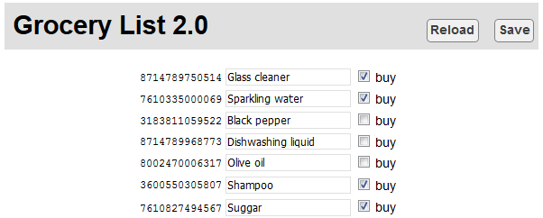 Therefore, we found it simpler to manually enter the correspondences when needed. So we wrote a small web interface allowing us to update the correspondences and, if need be, to modify the shopping list.