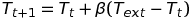This formula means simply that at each evaluation, the reference temperature for the computation of the compensation is computed as the previous value to which is added a small proportion of the difference between the outside temperature and the current temperature. In our case, we update the temperature every ten seconds, and we use a β factor of about 0.5‰.
