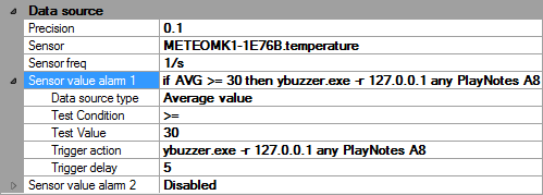 The latest version of Yocto-Visualization adds two alarms per Yoctopuce sensor. These alarms can run a system command line each time they are triggered.
