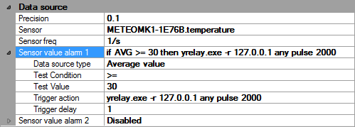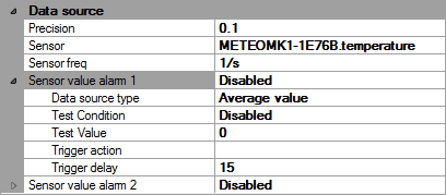 • Data source type: allows you to decide if the alarm is triggered by the minimal, average, or maximal value of the latest measuring period. This period is directly linked to the frequency defined for the sensor.