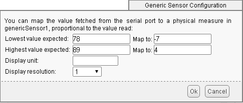 Finally, we modified the sensor mapping so that 78 corresponds to -7, 85 to 0, and 89 to 4. Thus, we only need to test whether the current value of genericSensor1 is strictly positive to know if something moved in front of the sensor. We also took this opportunity to assign the "PIR" logical name to genericSensor1.