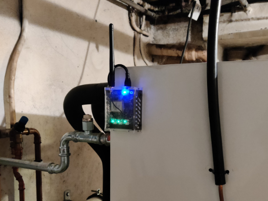 The YoctoHub is connected on the output of our industrial power block and is mounted on the back of the furnace.