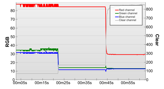 However, the sensor is having trouble to distinguish the blue color, at some levels it even sees more red than blue
