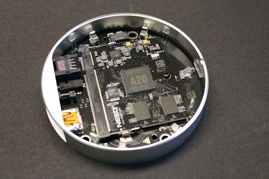 The NEEO system is a remote control with a few physical buttons and an excellent quality capacitive touch screen, and a small computer, the Brain which takes care of the computations.
