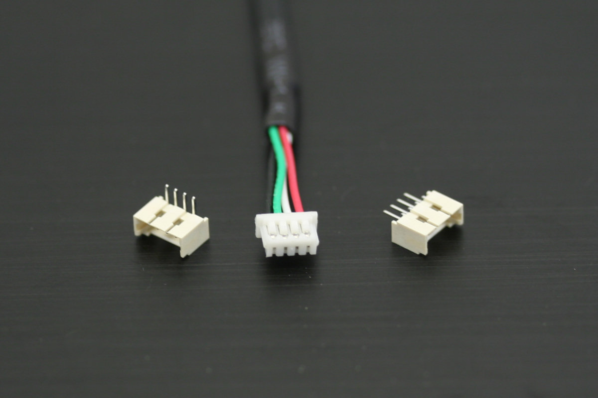 That 25 cm cable provides one USB A plug on one end and a 1.27mm connectors on the other end. This will allow you to wire your Yoctopuce devices in a very compact manner. Two 1.27 matching connectors are provided as well: straight and angled.