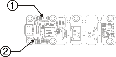 Yocto-button (1) and localization led (2) of the Yocto-Demo module.
