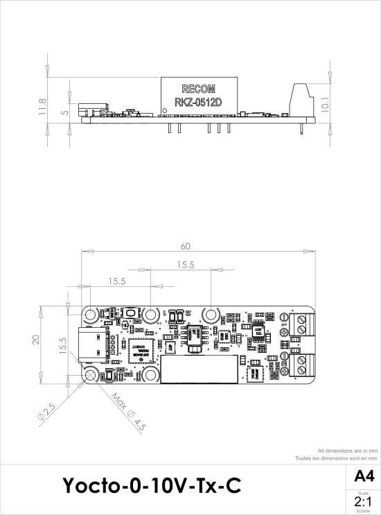 You can find below a summary of the main technical characteristics of your Yocto-0-10V-Tx-C module.