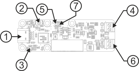 | 3: | Yocto-led | 6: | Terminal block for output 2 |