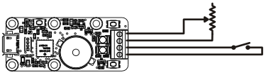 Your Yocto-Buzzer module is able to measure whether push buttons and switches connected to it are open or closed, in the same way it is able to measure the relative location of potentiometers connected to it. Actually, the module merely measures the resistance of each connected circuit.