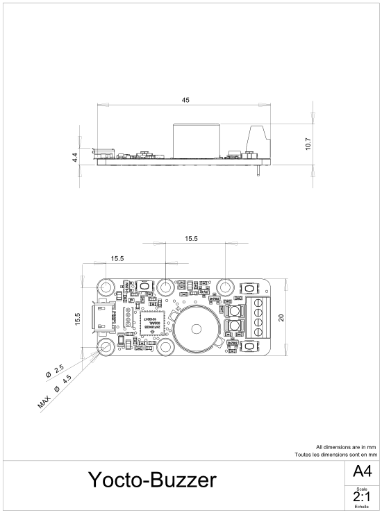 You can find below a summary of the main technical characteristics of your Yocto-Buzzer module.