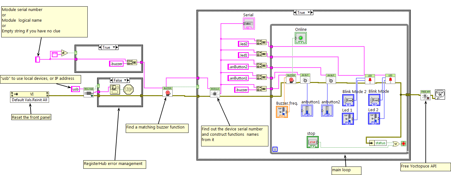 The Yoctopuce API was designed to be at the same time simple to use and sufficiently generic for the concepts used to be valid for all the modules in the Yoctopuce range, and this in all the available programming languages. Therefore, when you have understood how to drive your Yocto-Buzzer with your favorite programming language, learning to use another module, even with a different language, will most likely take you only a minimum of time.