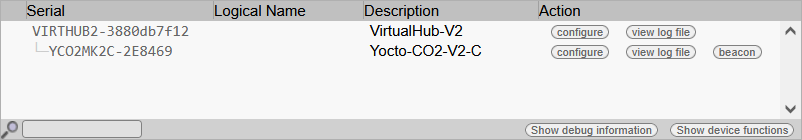 The first item to check is that your module is working well: click on the serial number corresponding to your module. This displays a window summarizing the properties of your Yocto-CO2-V2-C.