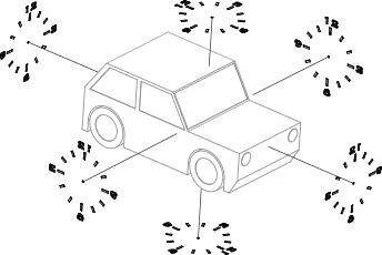 The orientation of each of the 6 clocks is defined in a natural way with regards to what the car driver would see.