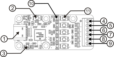 | 4: | Common earth | 10: | Channel leds 1 to 5 |