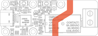 You can mount the Yocto-LatchingRelay-C directly on the hub using screw and spacers, and connect it using 1.27mm board-to-board connectors. To prevent shortcuts, it is best to solder the female connector on the hub and the male connector on the Yocto-LatchingRelay-C.