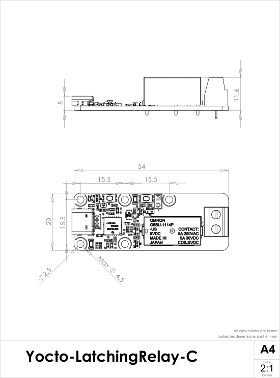 You can find below a summary of the main technical characteristics of your Yocto-LatchingRelay-C module.