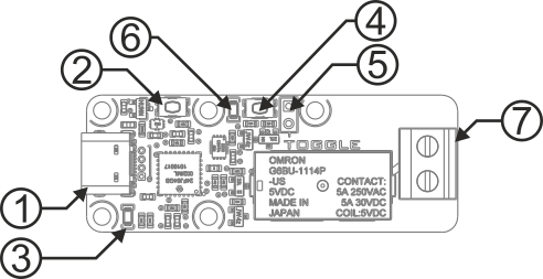 | 2: | Yocto-button | 6: | Led of output BOutput B |