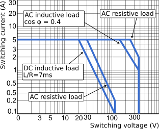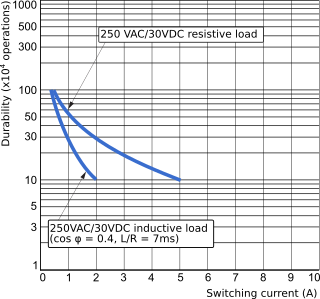 The contacts durability depends from the current and voltage as well, and also from the type of load: