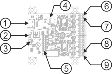 | 1: | Micro-B USB socket | 6: | I/O 0 : signal |