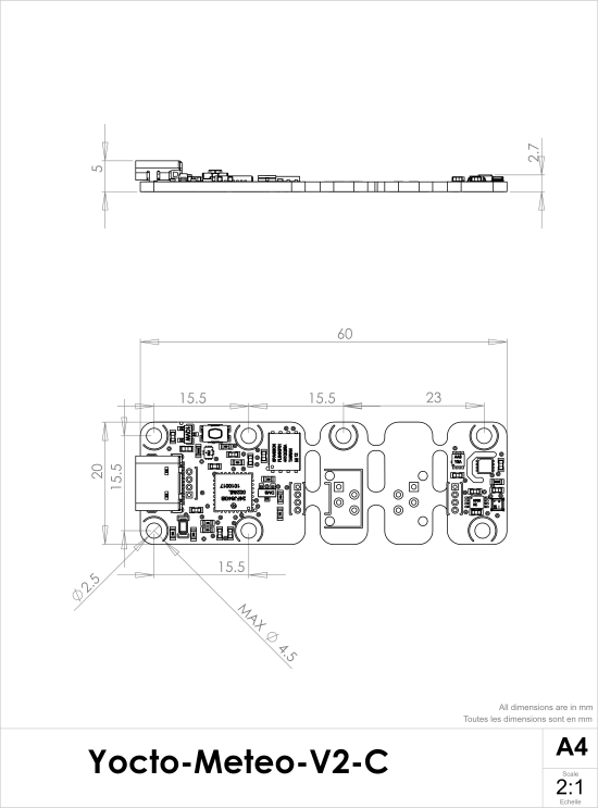 The Yocto-Meteo-V2-C is 100% compatible with its predecessors, the Yocto-Meteo (first version) and