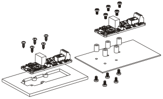 In order to mount the Yocto-PWM-Tx module, you can put small screws in the 2.5mm assembly holes, with a screw head no larger than 4.5mm. The best way is to use threaded spacers, which you can then mount wherever you want. You can find more details on this topic in the chapter about assembly and connections.