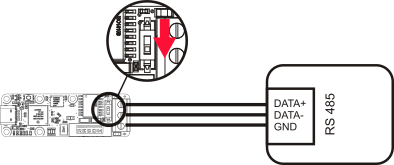 To optimize transmission quality on a RS485 bus, it is recommended to terminate it at both ends with a resistance of 120Ω between D+ and D-. To avoid using an external component, the Yocto-RS485-V2-C is equipped with an embedded resistance that you can connect to the bus by simply setting its micro-switch to ON.