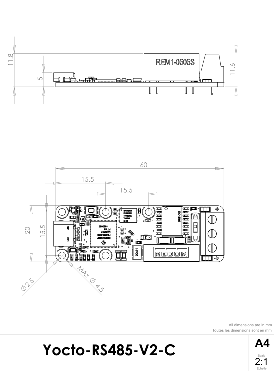 You can find below a summary of the main technical characteristics of your Yocto-RS485-V2-C module.