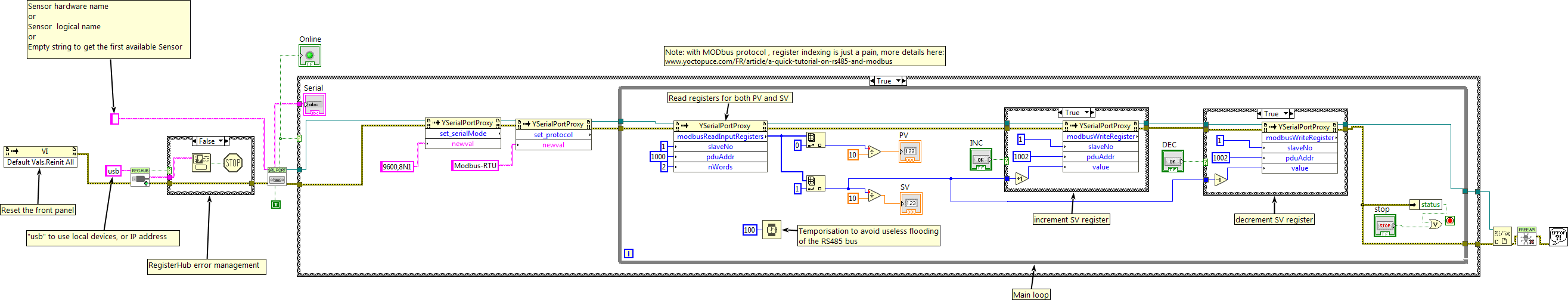 On top of offering low level serial communications, the Yocto-RS485-V2-C can autonomously question and analyze the RS485 output of any appliance to then present the results in the manner of a Yoctopuce sensor. In other words, the Yocto-RS485-V2-C can transform any sensor equipped with an RS485 output into the software equivalent of a Yoctopuce sensor, data logger included.