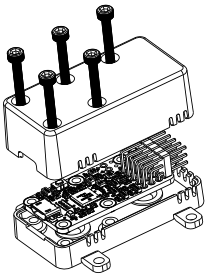 The Yocto-Servo module contains 2.5mm assembly holes. You can use these holes for screws. The screw head diameter must not be larger than 4.5mm or they will damage the module circuits. Make sure that the lower surface of the module is not in contact with the support. We recommend using spacers, but other methods are possible. Nothing prevents you from fixing the module with a glue gun; it will not be good-looking, but it will hold.