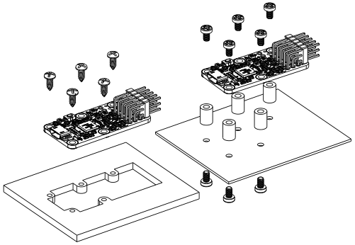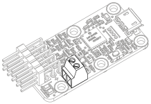You can mount the Yocto-Servo directly on the hub using screw and spacers, and connect it using 1.27mm board-to-board connectors. To prevent shortcuts, it is best to solder the female connector on the hub and the male connector on the Yocto-Servo.