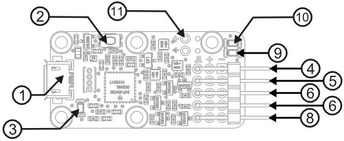 | 5: | Channel servo 2 | 10: | External power supply led |