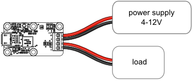 The Yocto-WatchdogDC behaves itself like a relay which would cut the positive wire of the power supply that it controls. You must bring the power supply on the contacts on the right and leave from the contacts on the left. Make sure to respect polarity otherwise you risk to destroy the Yocto-WatchdogDC and your equipment.