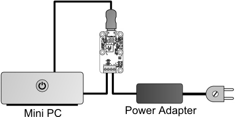The Yocto-WatchdogDC typical use is headless minicomputer power cycling. If the application controlling the minicomputer loses control of the Yocto-WatchdogDC, the computer is automatically power-cycled. However, make sure that the current going through the Yocto-WatchdogDC stays below 4A.