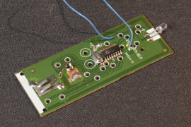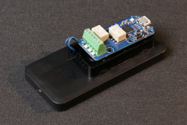 On s'est donc juste contenté de souder deux fils sur les pistes qui conduisent à cette touche, on a connecté ces fils à un Yocto-Relay en intercalant une résistance de 3 kΩ pour émuler la résistance de la touche. Le relais est donc câblé en parallèle avec la touche. On a installé le Yocto-Relay dans un boîtier collé à l'arrière du boîtier de la télécommande et on a tout remonté.