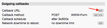 Configurez maintenant un YoctoHub-Ethernet ou un YoctoHub-Wireless-g pour qu'il aille poster des données sur ce serveur. Dans la fenêtre de configuration, cliquez à droite de Callback URL sur le bouton edit: