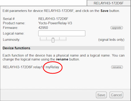 Affection d'un nom logique au relais du Yocto-PowerRelay