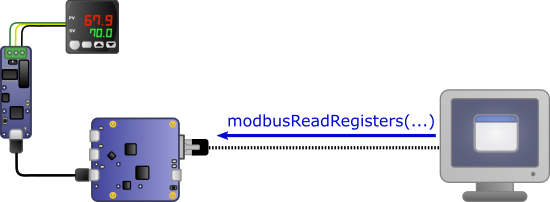 Un scénario typique de cette configuration pourrait être la surveillance à distance d'un automate MODBUS, pour laquelle on désirerait vérifier périodiquement la valeur de nombreux registres. Si l'on disposait d'un accès réseau direct, il suffirait de raccorder un Yocto-RS485-V2 à un YoctoHub-Ethernet et d'utiliser les fonctions d'interrogation MODBUS de la librairie Yoctopuce:
