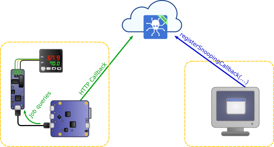 La plupart de nos exemples avec les modules de communication Yoctopuce utilisent leur système de jobs intégré, qui permet d'interroger de manière autonome un capteur externe et d'affecter les valeurs lues aux 10 genericSensors disponibles sur le module. Cela permet en particulier de remonter facilement les mesures sur un serveur VirtualHub for Web. Aujourd'hui, nous allons vous montrer comment procéder dans un cas plus complexe où il n'est pas possible d'utiliser les genericSensors, par exemple parce qu'il y a plus de 10 mesures à capturer, ou parce que les données ne sont pas numériques.