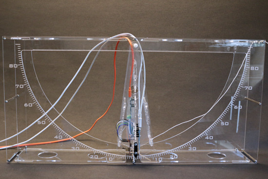 Pour faire cette comparaison, nous avons construit une petite balancelle graduée sur laquelle sont fixés d'un côté un capteur Murata SCL3300 et un Yocto-SPI, et de l'autre un Yocto-3D et un Yocto-3D-V2. Après avoir soigneusement aligné l'installation à l'horizontale sur les deux axes à l'aide d'un inclinomètre numérique certifié, nous avons déplacé la balancelle à diverses positions stables et surveillé avec Yocto-Visualization les valeurs d'inclinaison retournées par les différents modules.