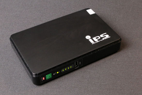 On a un peu cherché du côté des mini-UPS parce qu'un UPS étant censé fournir du courant quoiqu'il arrive, il y a peu de chance qu'il décide de s'éteindre sans une raison impérieuse. On a trouvé le modèle UPS-15-POE de Intelligent Power Sources. Il se présente sous la forme d'une boîte de 16x11x3cm, il dispose d'une sortie USB-A, d'une sortie configurable en 5 et 12V, d'un bouton ON/OFF et d'une entrée 100-240V AC.