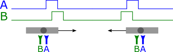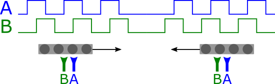 Si l’on étend le principe en répétant le motif, on obtient deux signaux périodiques décalés, dont le sens du décalage indique le sens de déplacement et le nombre d'impulsions la distance: