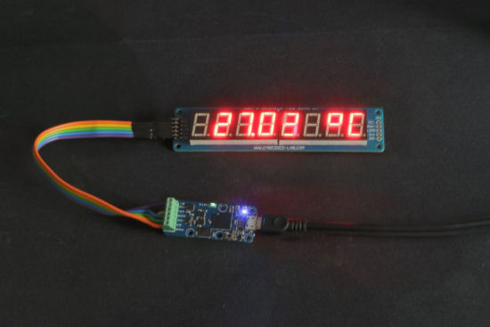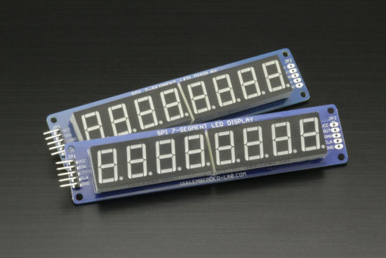 Voici une petite démonstration du Yocto-SPI, utilisé pour piloter un petit périphérique SPI. Nous avons trouvé des sympathiques petits afficheurs 7 segments très abordables sur embedded-lab.com. Ils sont disponibles en 4 couleurs et peuvent être chaînés. Voyons donc comment les piloter depuis une application existante, à l'aide d'un Yocto-SPI.