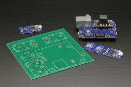 Les modules Yoctopuce et le PCB fait avec DipTrace  Les modules montés sur le PCB