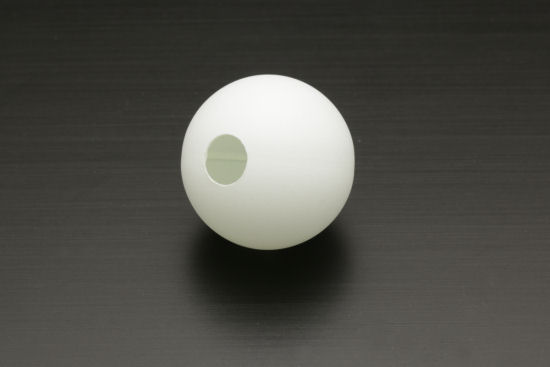 Ensuite, avec un Dremel et une fraise, on a percé un gros trou dans chacune des balles des ping-pong. Il faut que ce trou soit plus gros de la LED mais plus petit que de diamètre du capuchon. De plus, si on le centre sur le plan de joint de la balle, il sera plus facile d'orienter toutes les balles de la même façon. En effet le joint reste assez visible par transparence.