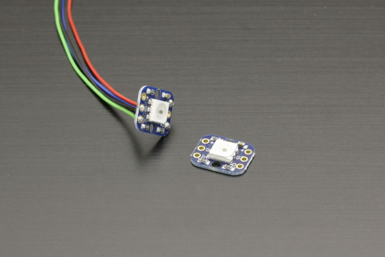 On a ensuite soudé quatre petits fils sur les pads +,GND,In et out de chacune des LEDS.