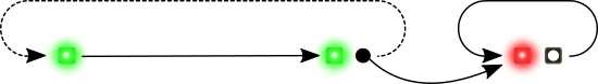 C'est pourquoi le script PHP utilise une nouvelle fonction de l'API du Yocto-Color-V2, qui permet de faire sauter une LED d'une séquence à l'autre. On définit une première séquence qui contient la phase verte et qui se termine par un saut sur une deuxième séquence qui assure le clignotement rouge et qui va tourner en boucle.